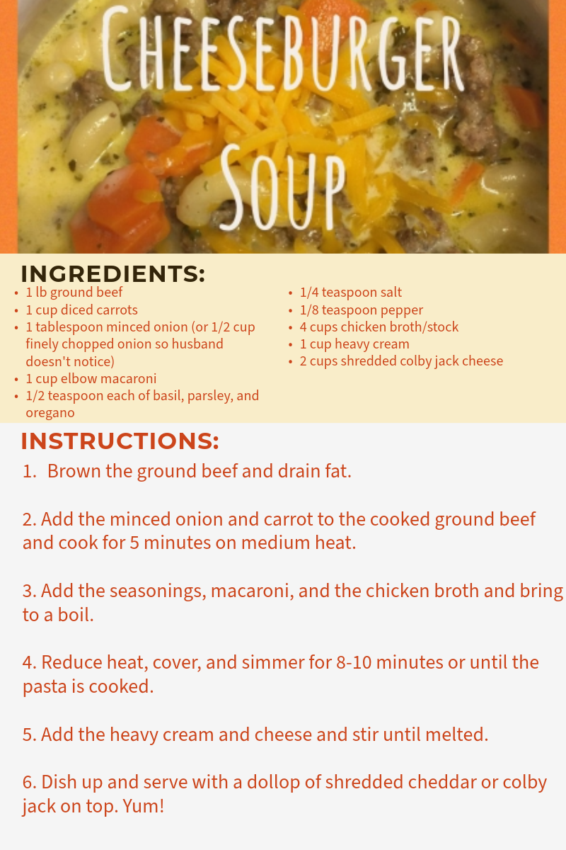 Cheeseburger soup has become a regular meal in our home. The kiddos aren’t always excited about, but it is easy and we LOVE the leftovers!